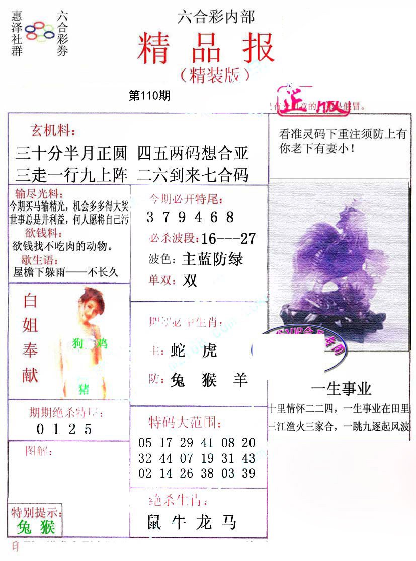 | 110期: 《⑤不中》「15,04,36,41,21」开:0000 准 |